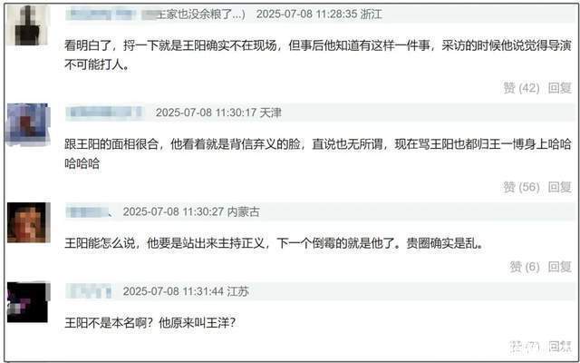 不少网友看到孙菲菲还原了经过,怒骂王阳虚伪,指责其当面一套背后一套。在孙菲菲面前统一阵线,需要帮助的时候示弱卖好,有打人导演在的场合则背信弃义,开口便暗示导演打人并非事实。而这一切都还有公开采访考据,可见王阳的做派有多虚假。