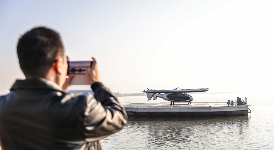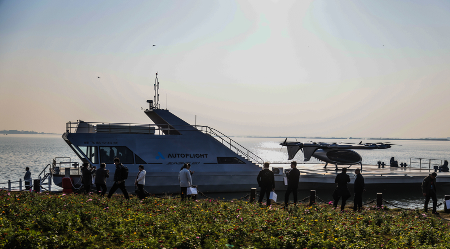 图为eVTOL正在“水上机场”等待起飞。