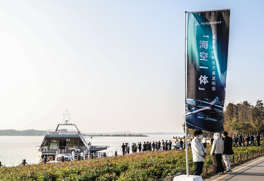 图为峰飞航空科技正式发布全球首个“海空一体低空经济解决方案”——由“零碳水上机场”与“eVTOL航空器”协同组成。