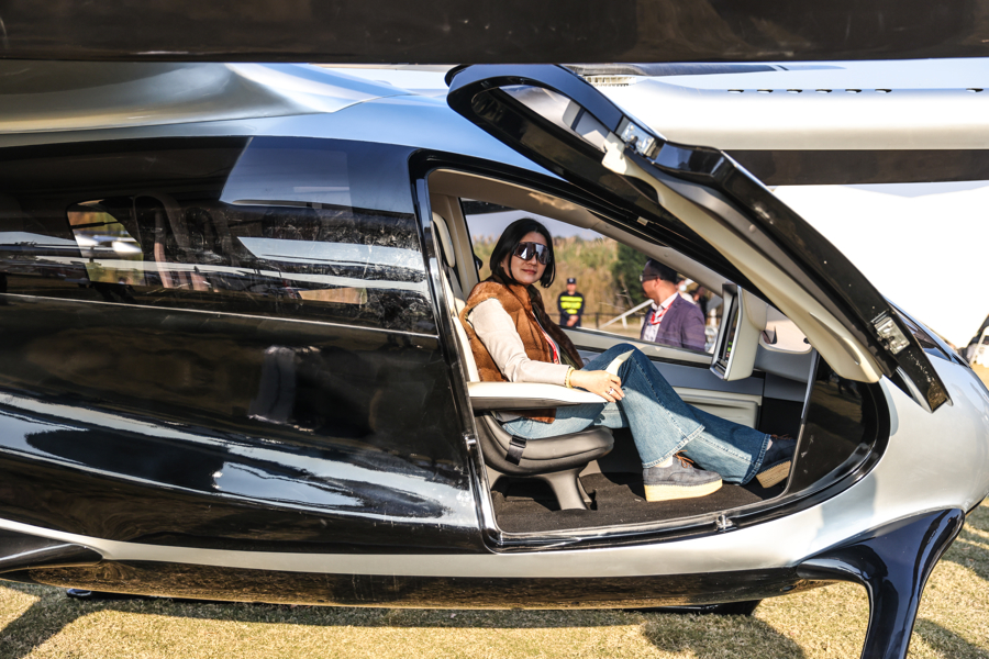 图为观众正在体验eVTOL航空器座舱。