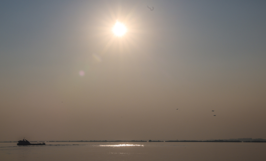 图为eVTOL从“水上机场”起飞,腾空飞行。